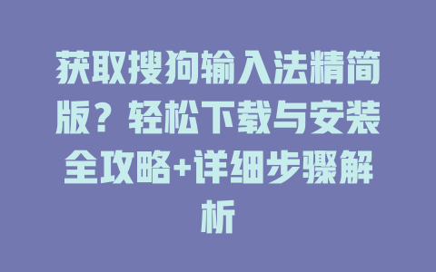 获取搜狗输入法精简版?轻松下载与安装全攻略+详细步骤解析